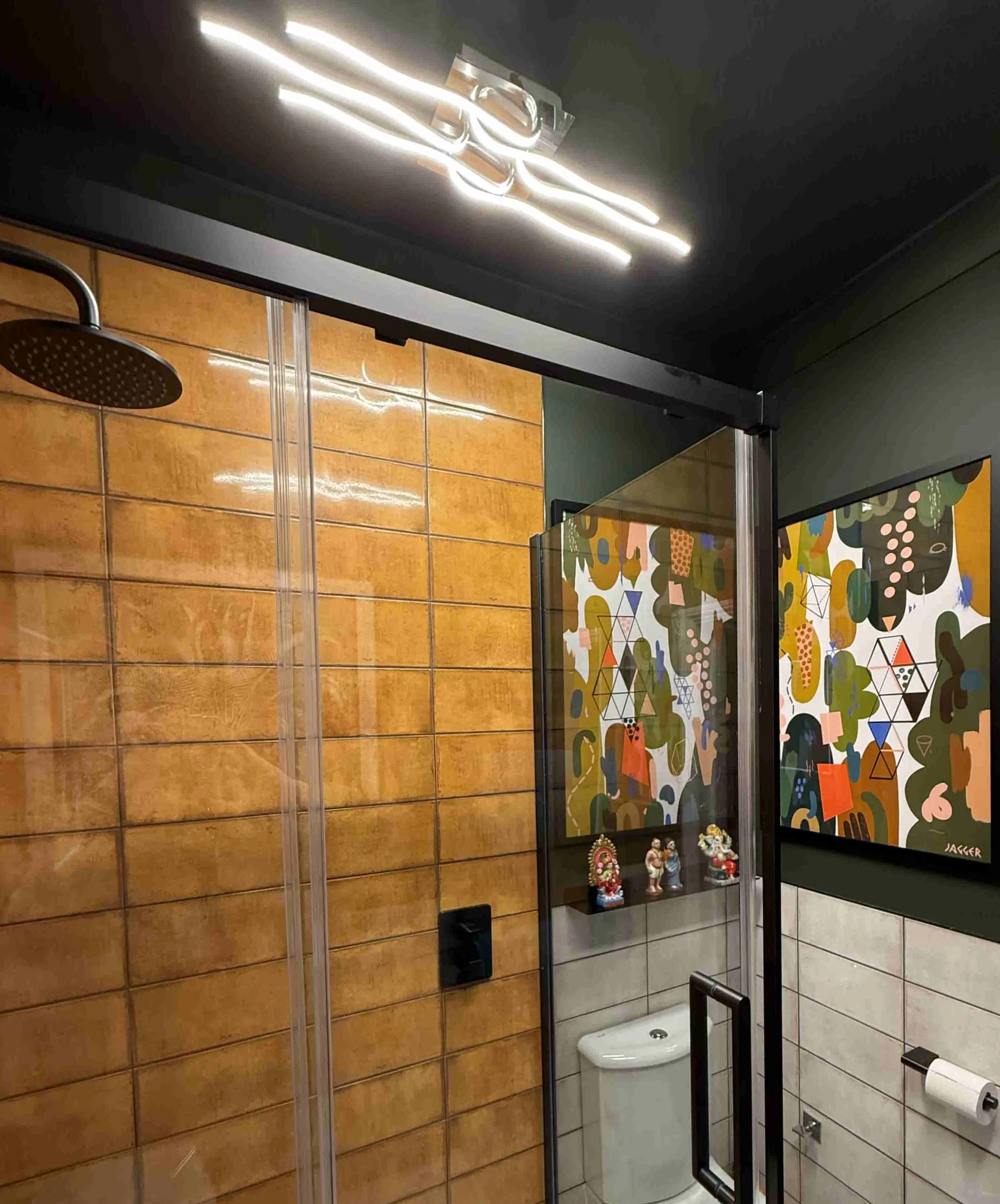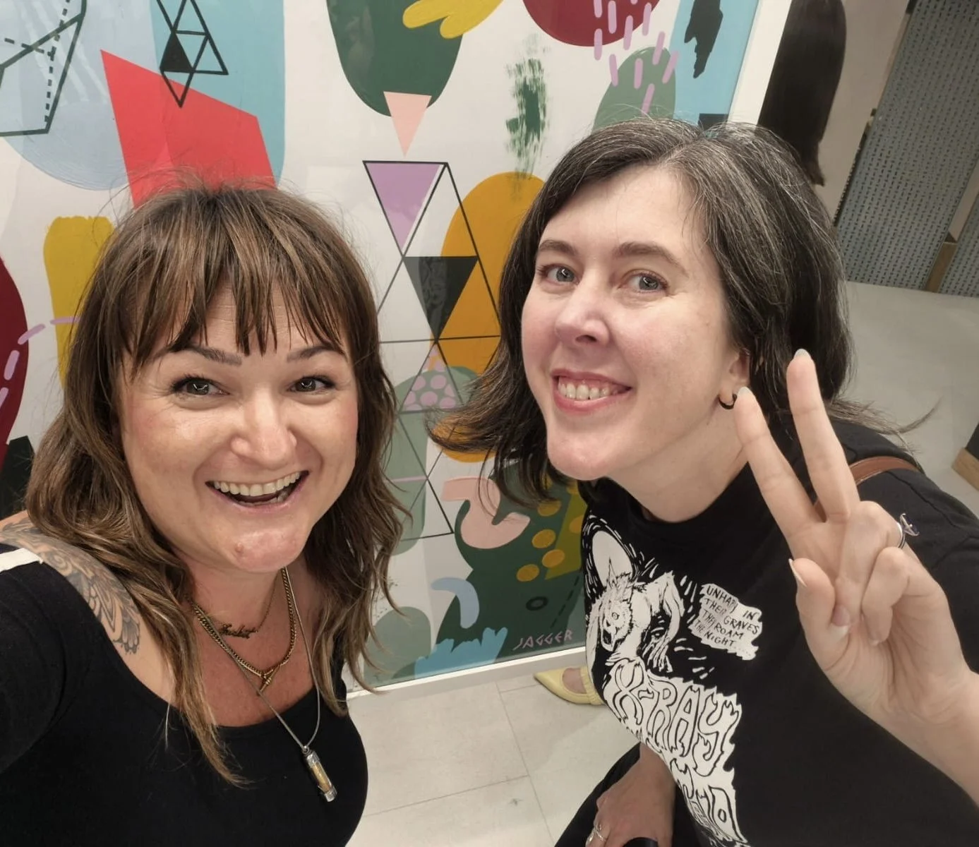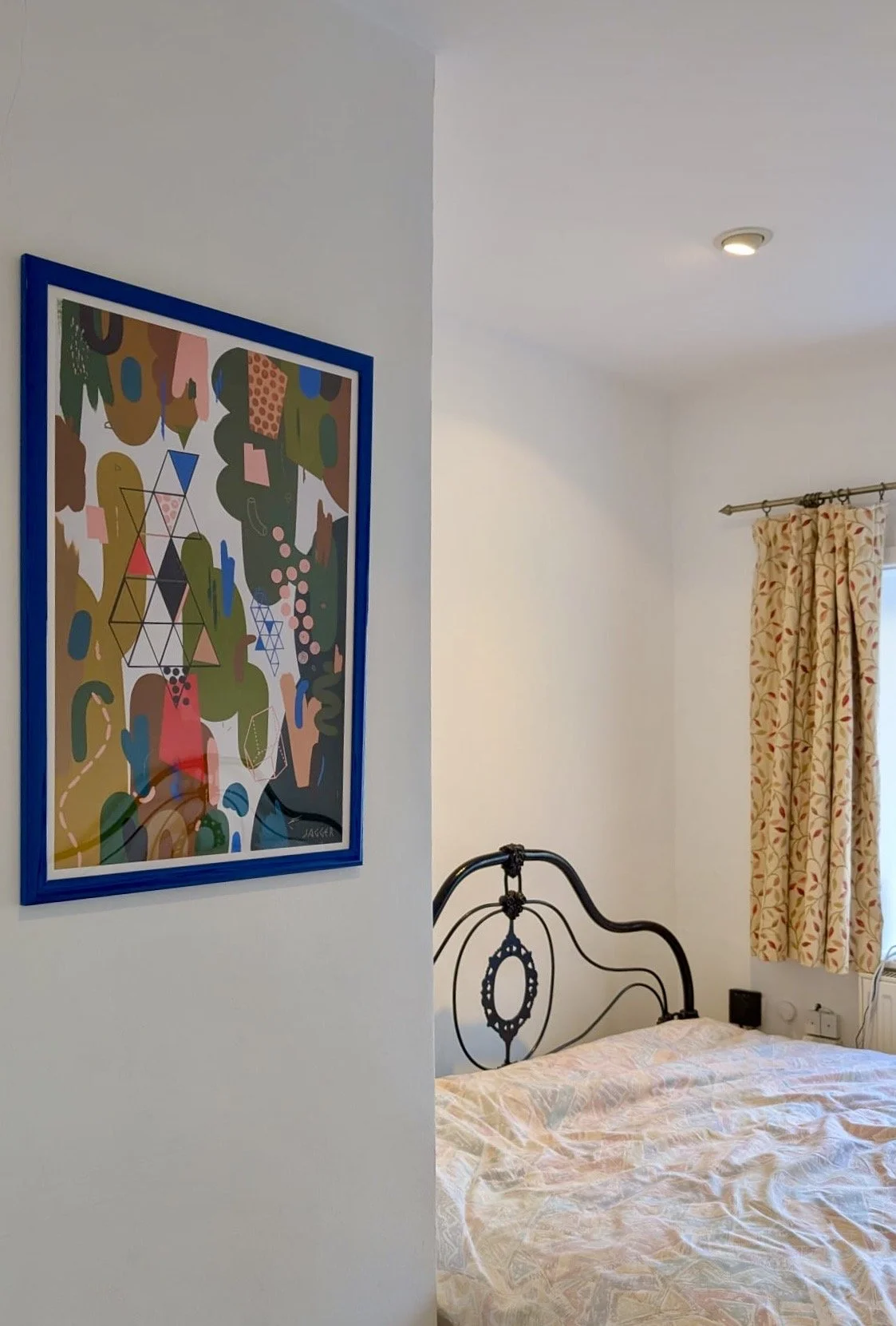 The paintings were framed in black and white and hung back to back from the ceiling of Gareth Vance’s new salon in Leeds.