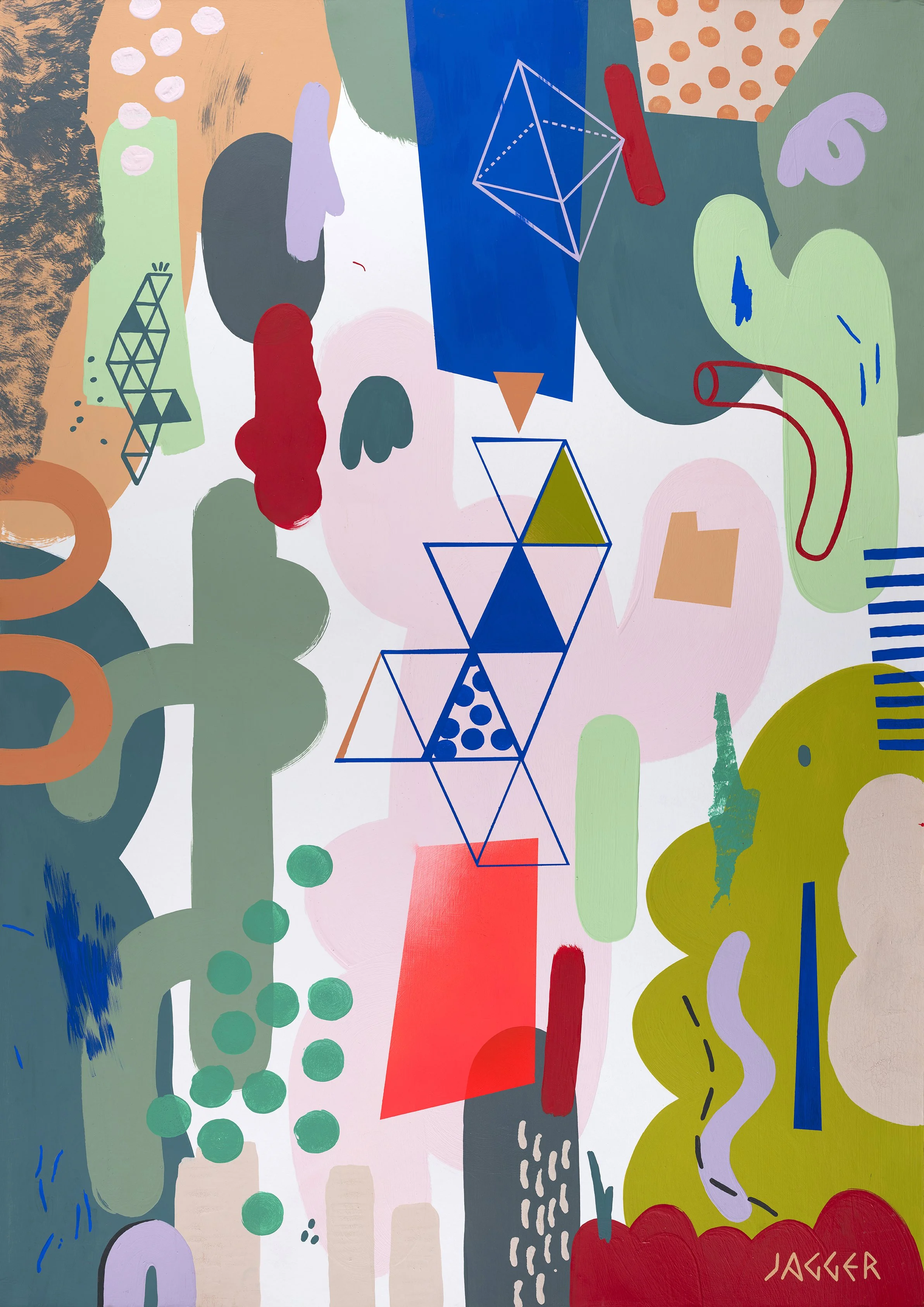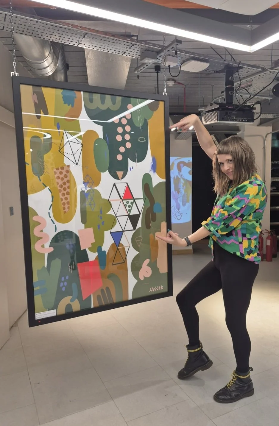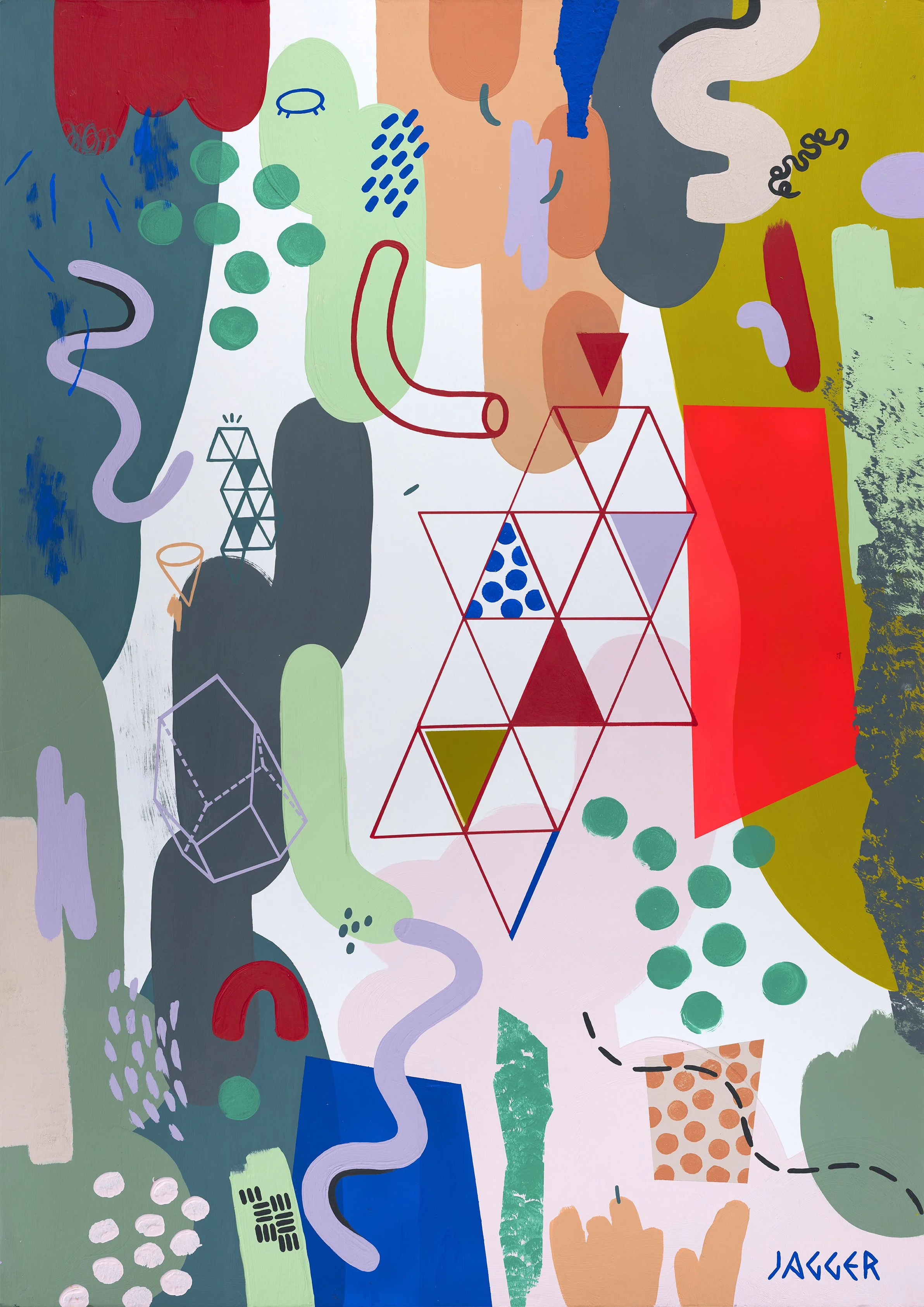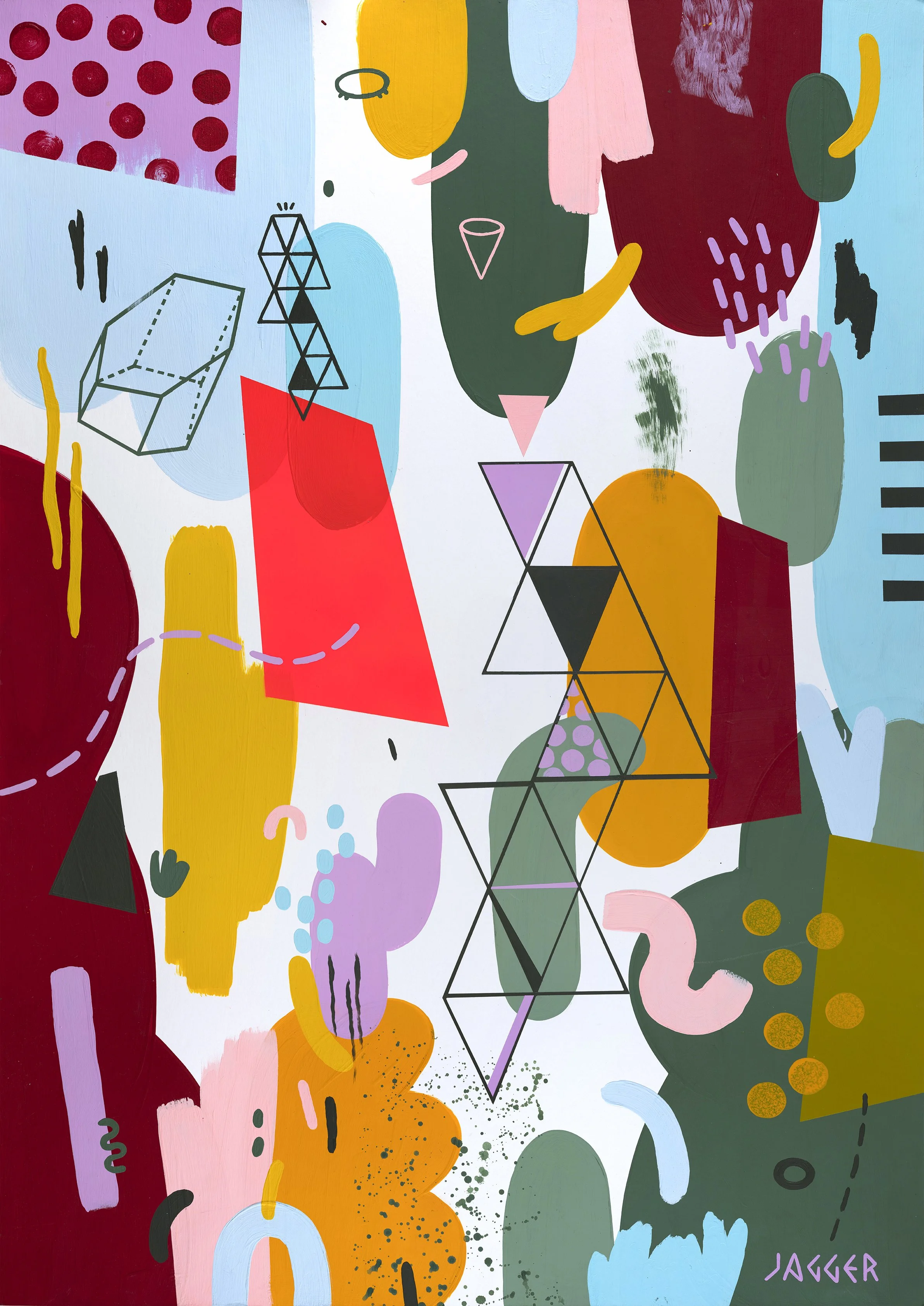 The sell out ‘Circus’ exhibition in August 2025 comprised a series of eight A0 paintings, divided into pairs, each with a distinct colour scheme. Each painting contains a pop of red fluorescent spray paint which ties the body of work together.