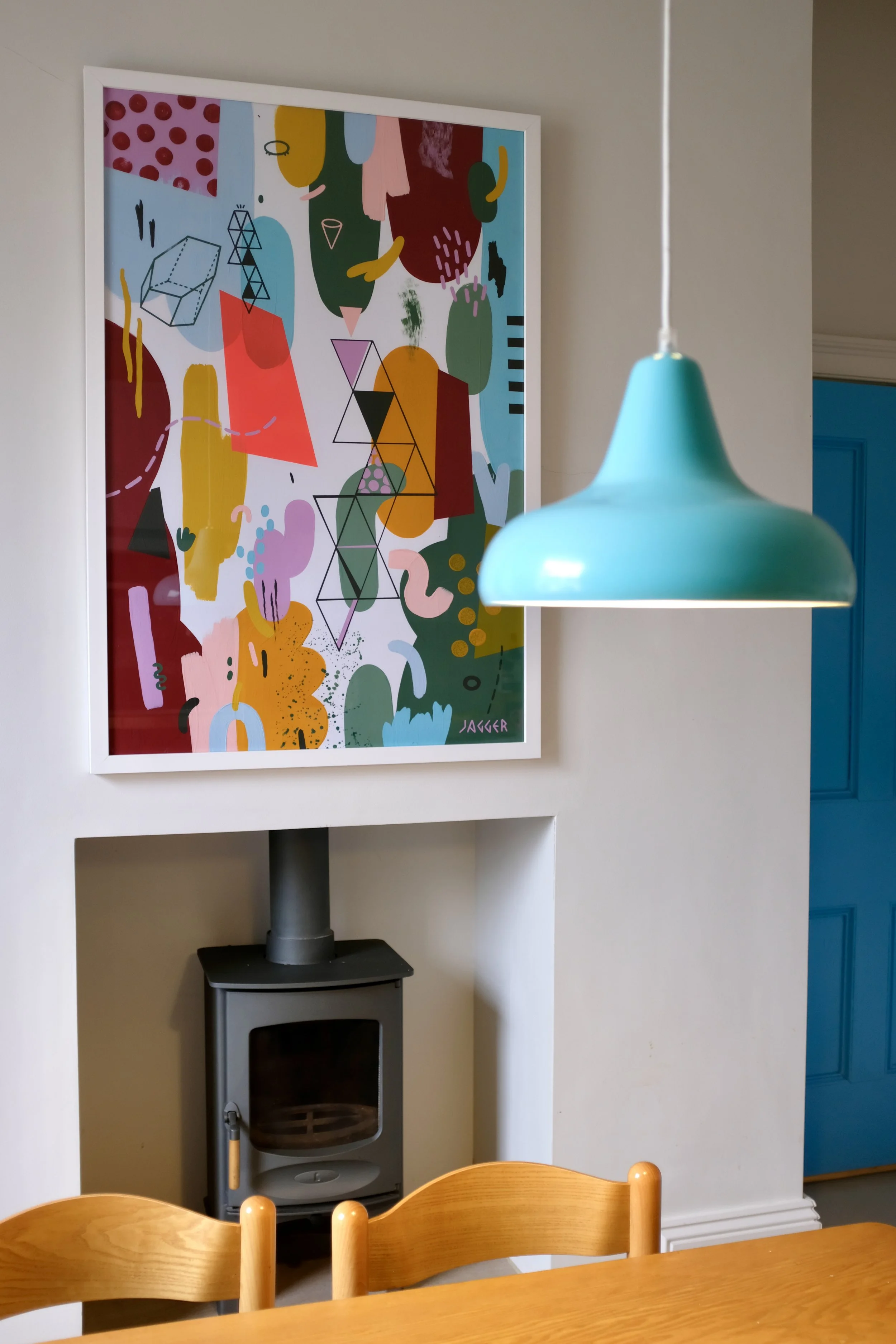 Vibrant palette of bold primary colours balanced with soft pastels and muted earthy greens.